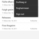 Agus sin agad e. Tha Beurla a’ nochdadh an-siud ’s an-seo fhathast ach cuiridh sinn Gàidhlig air a dh’aithghearr (cha robh cabhag roimhe ’s na cànain bheaga am falach gu tur):
